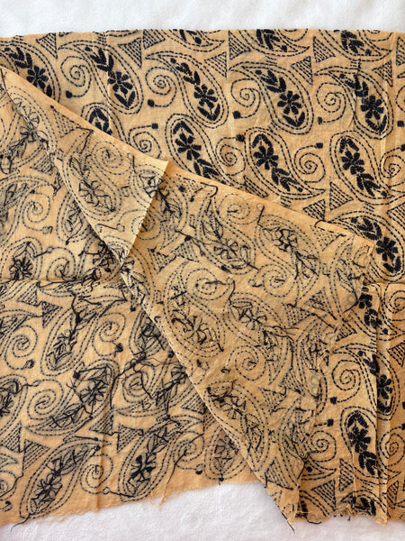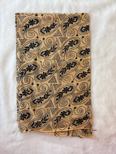 Intricate embroidery in black on beige pure cotton cloth of 1 metre. The embroidery is all over, done in kantha style of Bengal. Vintage style, perfect for festive occasions and daily wear too.