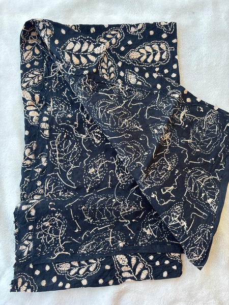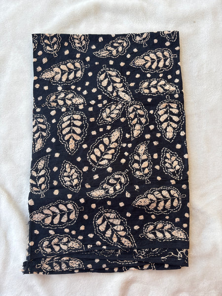 Intricate embroidery in beige on black pure cotton cloth of 1 metre. The embroidery is all over, done in kantha style of Bengal. Vintage style, perfect for festive occasions and daily wear too.