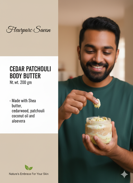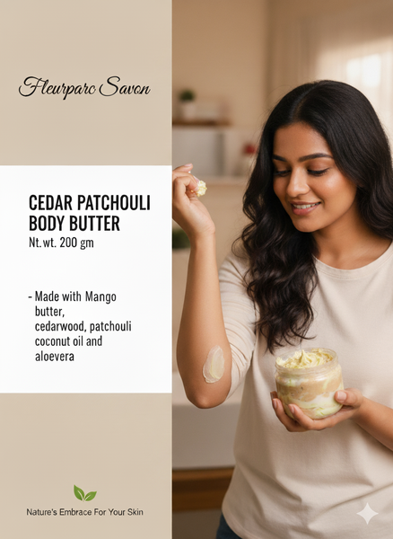 Immerse yourself in the earthy luxury of our Cedar Patchouli Body Butter. Crafted with care, this indulgent blend features the richness of cedarwood and patchouli essential oils, renowned for their grounding and soothing properties. Infused with these natural aromas, it offers a sensory experience that transports you to serene forests and tranquil sanctuaries.