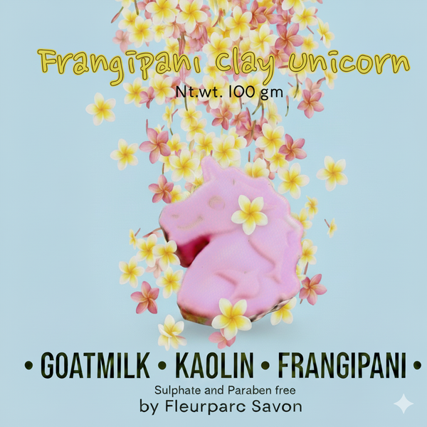 Frangipani Clay Unicorn soap is an uplifting soothing aromatic clay soap that is quite gentle on the skin. A mild Lathering Soap that gently cleanse without stripping away the naturals of skin.