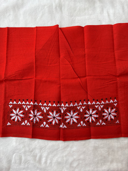 Intricate embroidery in white and black on rust cotton cloth of 80 centimetres . The embroidery is for the arms and the back, done in kantha style of Bengal. Vintage style, perfect for festive occasions and daily wear too.