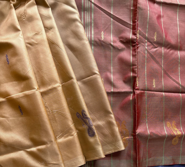 Light-weight, lustrous, easy to drape, made entirely from natural fibre (vazhai =banana pattu = silk) and above all, easy on the pocket. These are sarees that entice a first-time wearer to a saree veteran alike.
