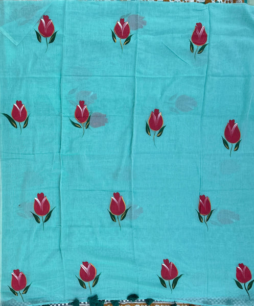 This is a 100% cotton, unstarched, super soft work-wear series that’s sassy, yet professional that will keep you comfortable, without having to constantly adjust the saree.