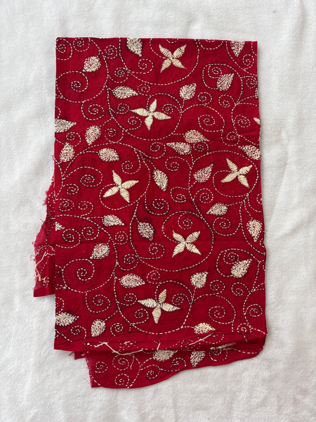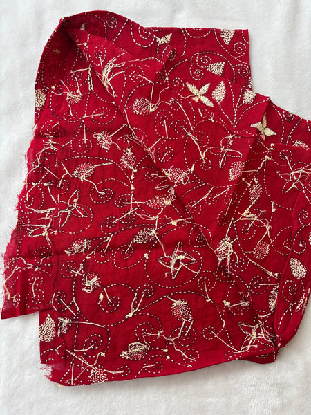 Red hand embroidered Kantha blouse fabric